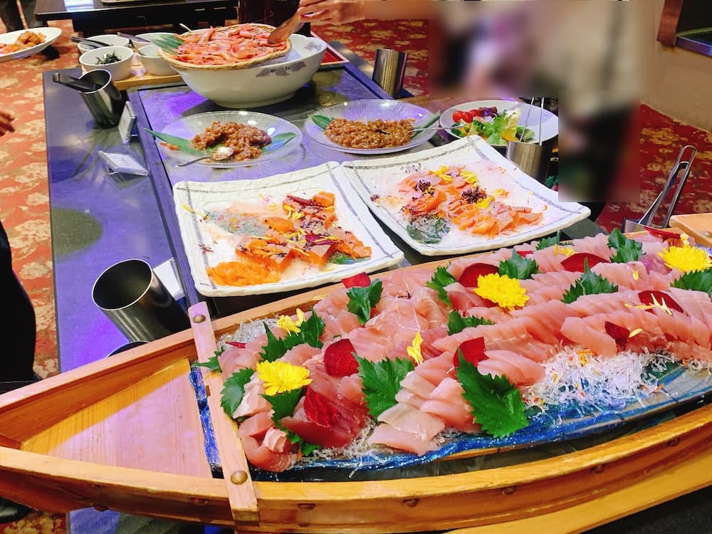 さっぱりしたところで、おまちかねの夕飯。レストランもあるけど、我々はバイキングで。