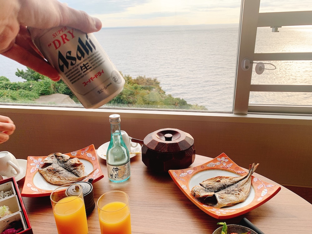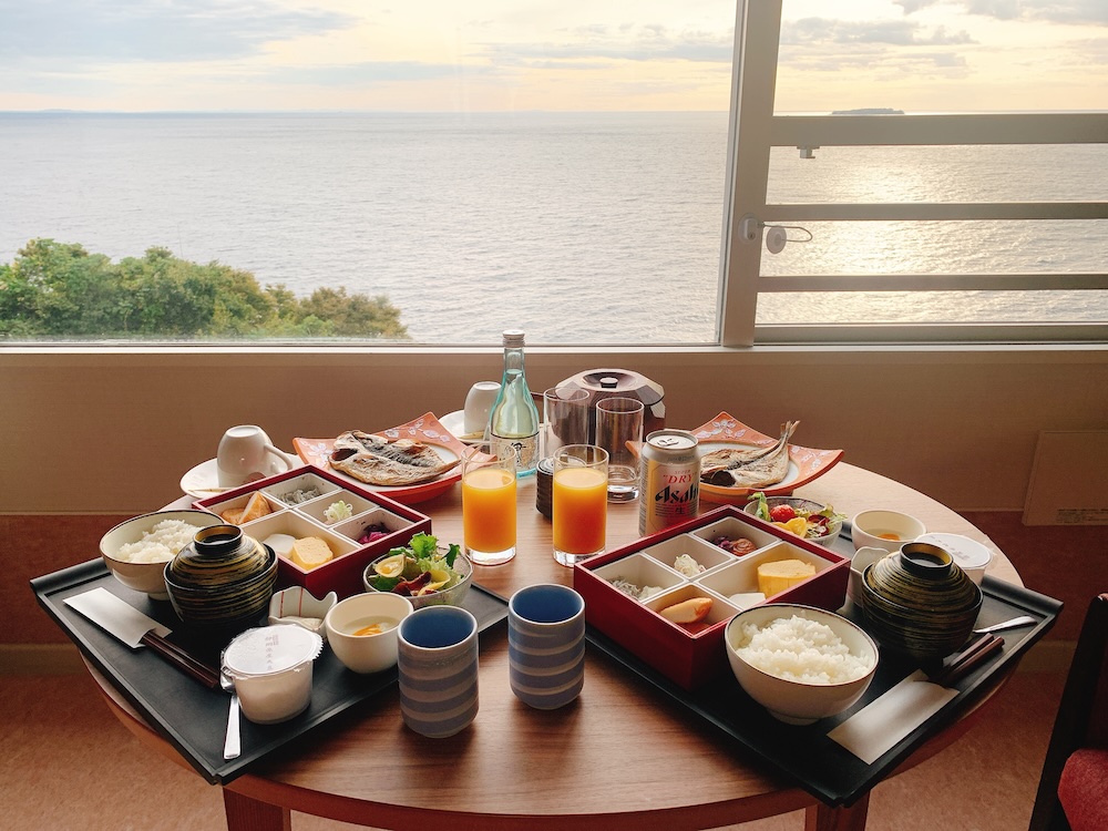 朝食前には、檜風呂が楽しめる大浴場『彩海』で、露天風呂からの朝焼けを堪能。全裸で少しずつ明るくなっていく海と空を眺めていると、年齢をひとつ重ねるなど瑣末なことだと思えるから、自然の力は偉大だ。俺たち人間は、とりわけ東京都民は、どうしてこうも年齢や美醜なんてくだらないものに拘泥して生きているのだろう。