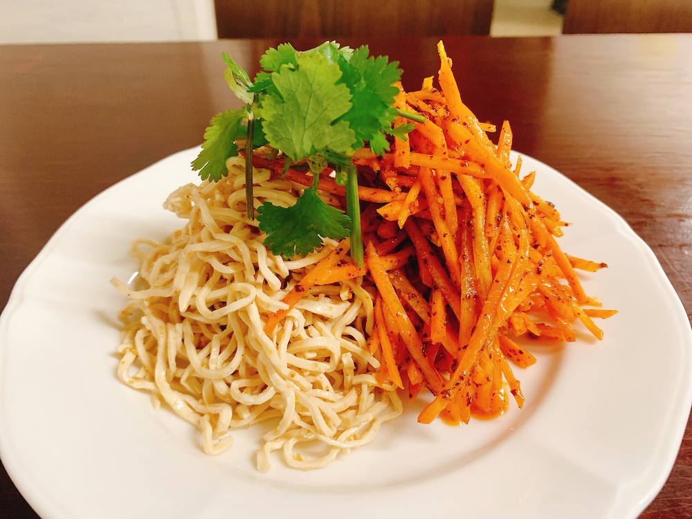 糸豆腐とニンジンをラー油黒酢で味付けした冷菜2種。