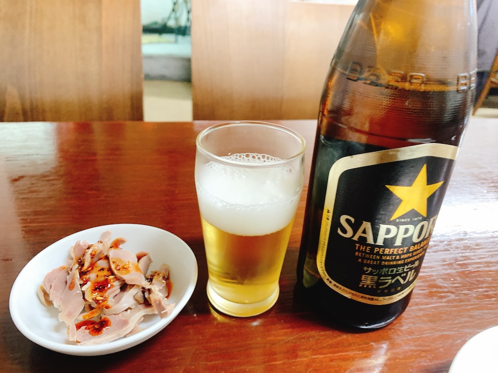 まずは瓶ビール。ここは黒ラベル。