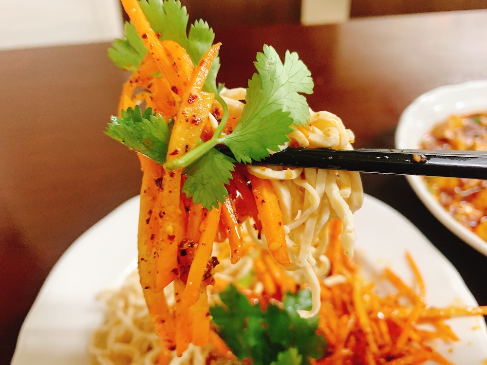 ラー油のスパイスが時々ジャリッとするのがたまらん。ごま油のいい香り。見た目より辛い。