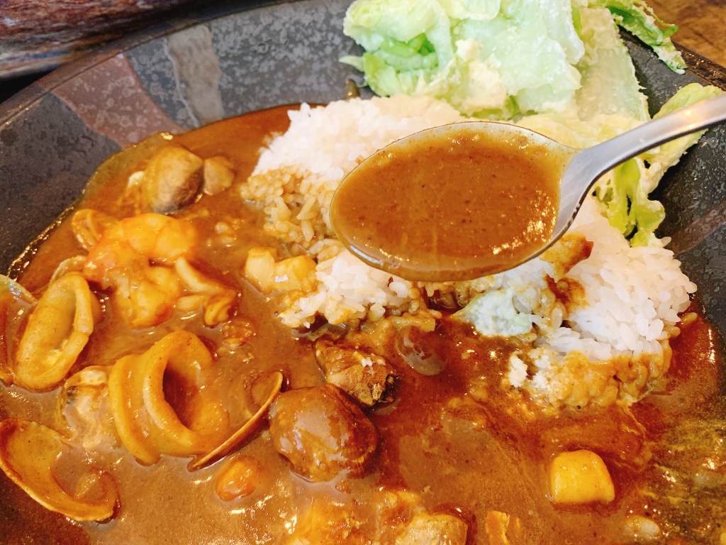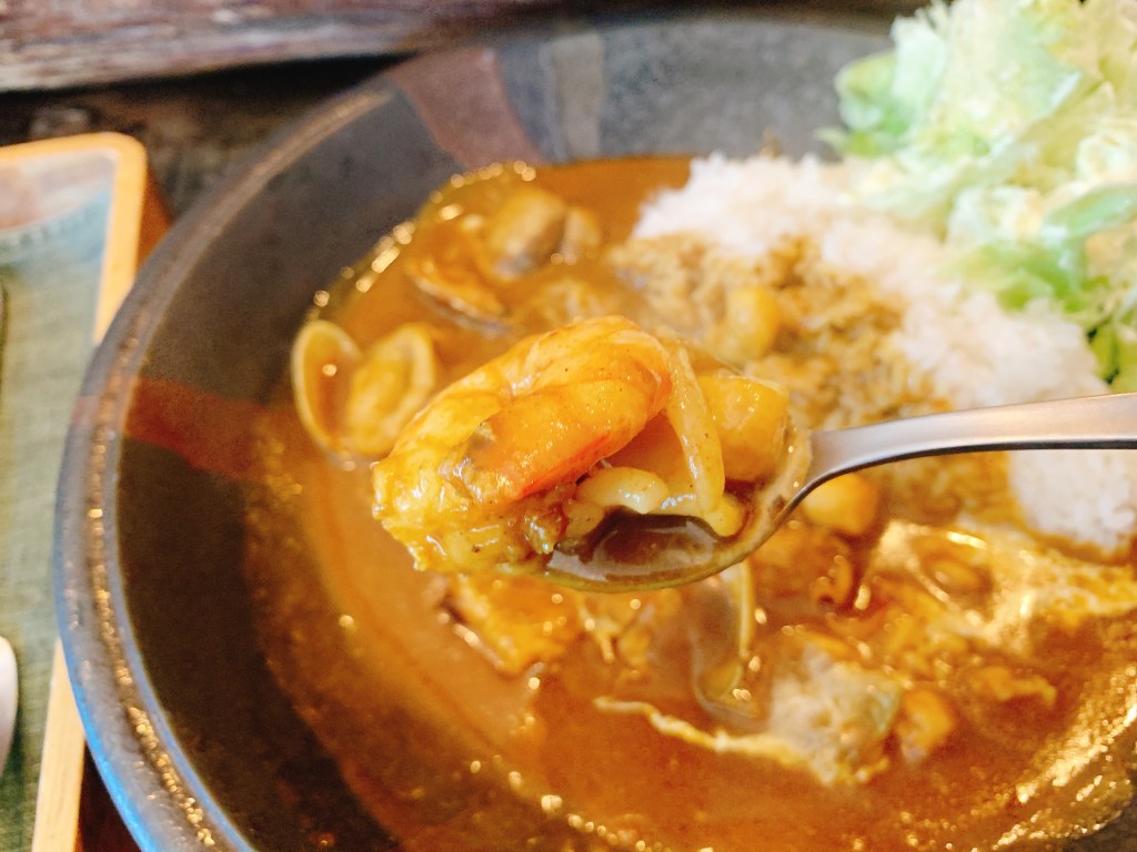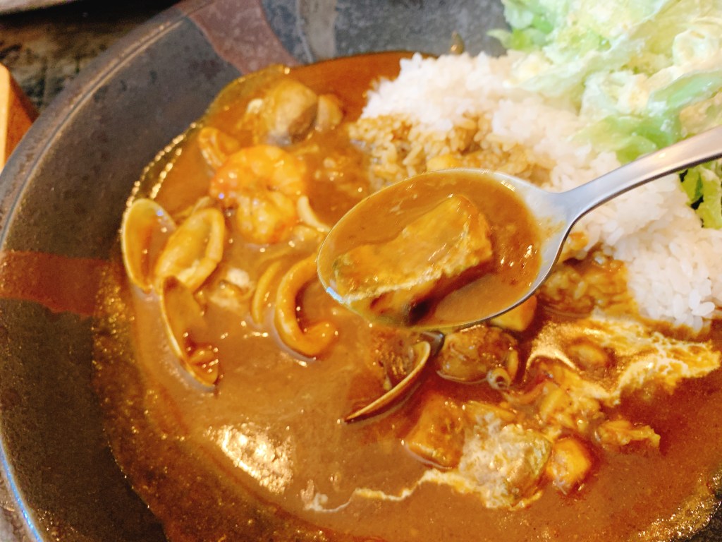 これぞ「シーフードが入っているカレー」ではなく、ほんまもんの「シーフードカレー」。んまーい。いつの間にか眉間の皺はどこかへ消えてしまった。
