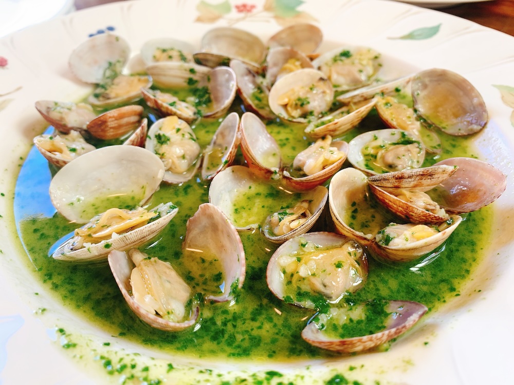 たっぷりのアサリのワイン蒸し。通年のレギュラーメニューのようだが、どこか「春」という季節を想起させる、こちらも美しく、あたたかみのあるビジュアルだ。