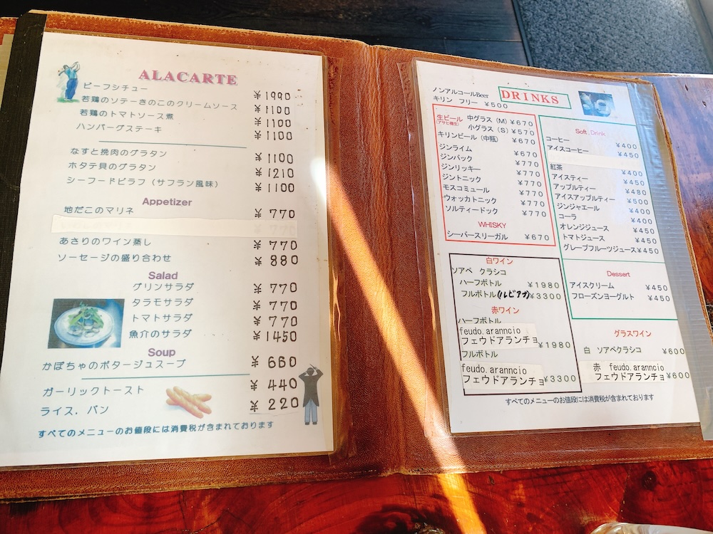 アラカルト、ドリンクメニュー。