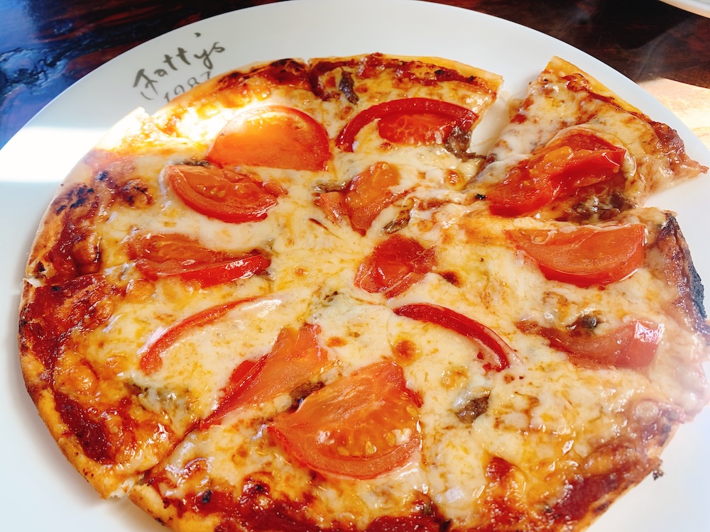 ピザはトマト&アンチョビで。先述した小説の主人公、ヨコスカCIAの桂はマッシュルームのピザを食べていた気がする。