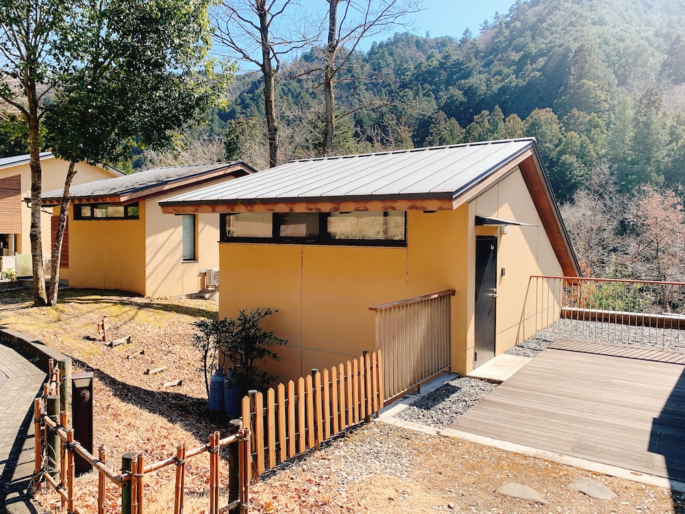 渓谷を望む宿泊コテージもある。