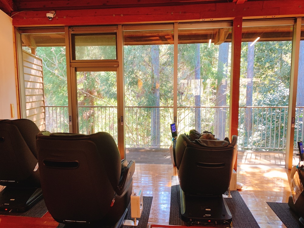 サウナ室からは渓谷の緑が望めて、渓谷を渡る風を感じながら入る水風呂も素晴らしい。