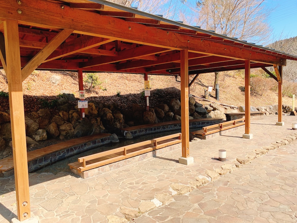 足湯。子供達が湯を掛け合っていた。