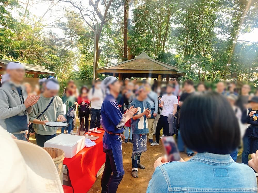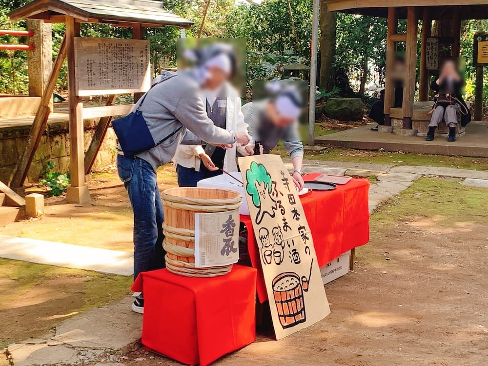 神社でお参りなんておまえにしては随分殊勝なことじゃないか…と思われたかもしれないが、実は下心がちゃんとある。朝10時からこの境内で、寺田本家のふるまい酒が行われるのである。そう、俺の大好きなタダ酒である。銘柄は「香取」