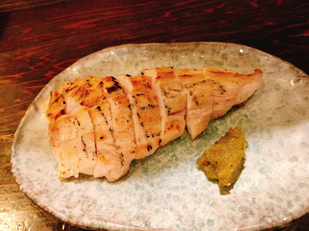 鶏の炭火焼き、香ばしくて美味い。
