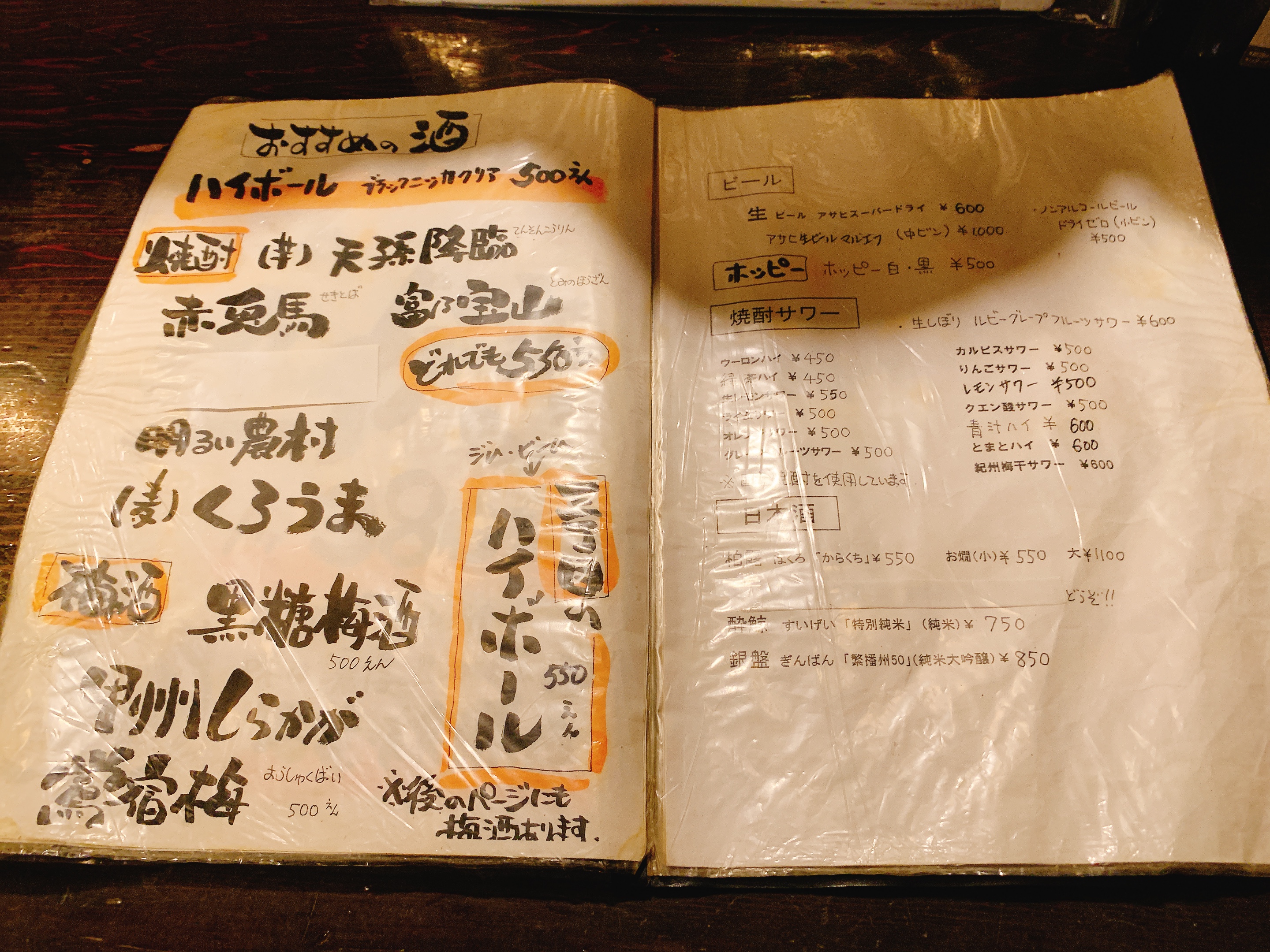酒は焼酎の品揃えが豊富。