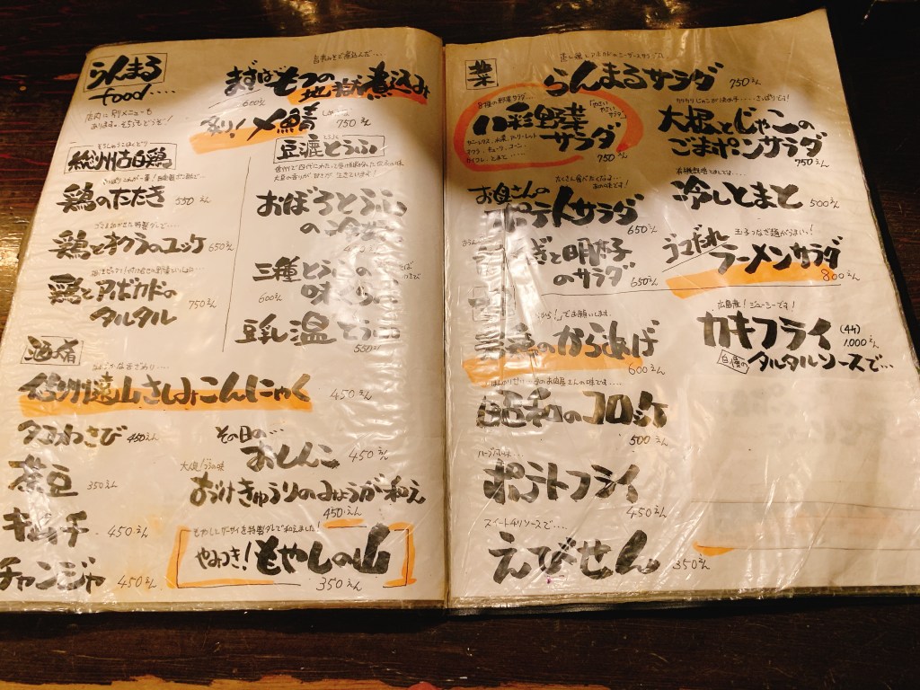 メニューはいわゆる王道の居酒屋といった感じ。何を食べても質が高い。