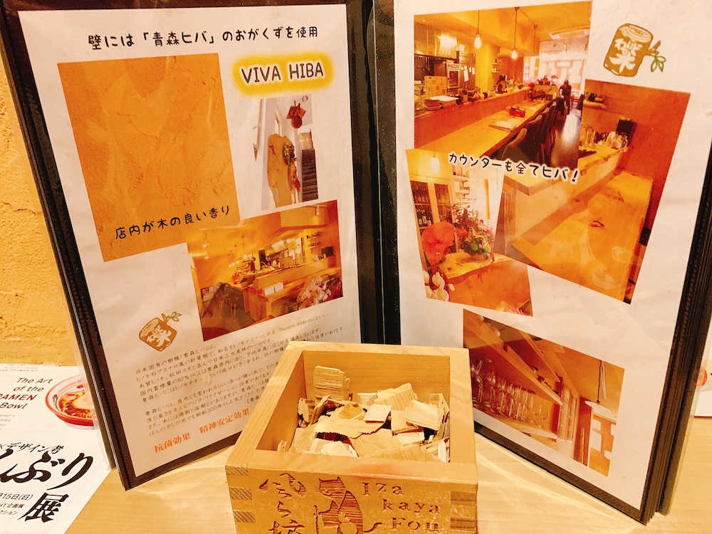 壁やカウンターには青森ヒバのおがくずを使用しているとのこと。