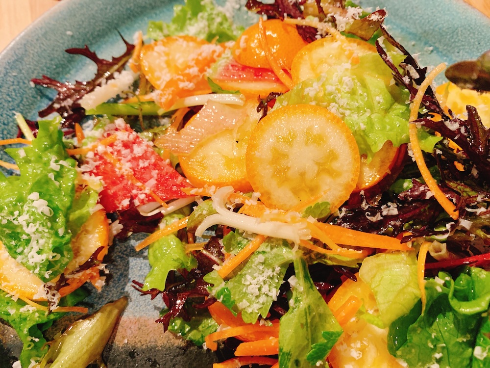 金柑と葉野菜のサラダ。うっとりするほど美しい…。
