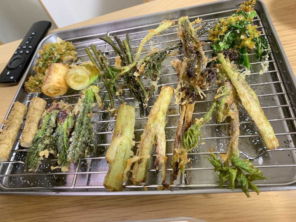 他の野菜たちも、天ぷらにすることで衣の中に春の息吹が閉じ込められたような、そんな味と香り。全身を吹き抜ける、秩父の春風。色に例えるなら、若草色か。