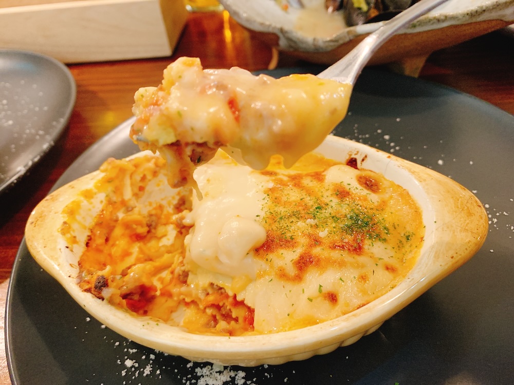 ソースやチーズが層を成したパスタと一体になって、口の中いっぱいを幸福感が満たす。